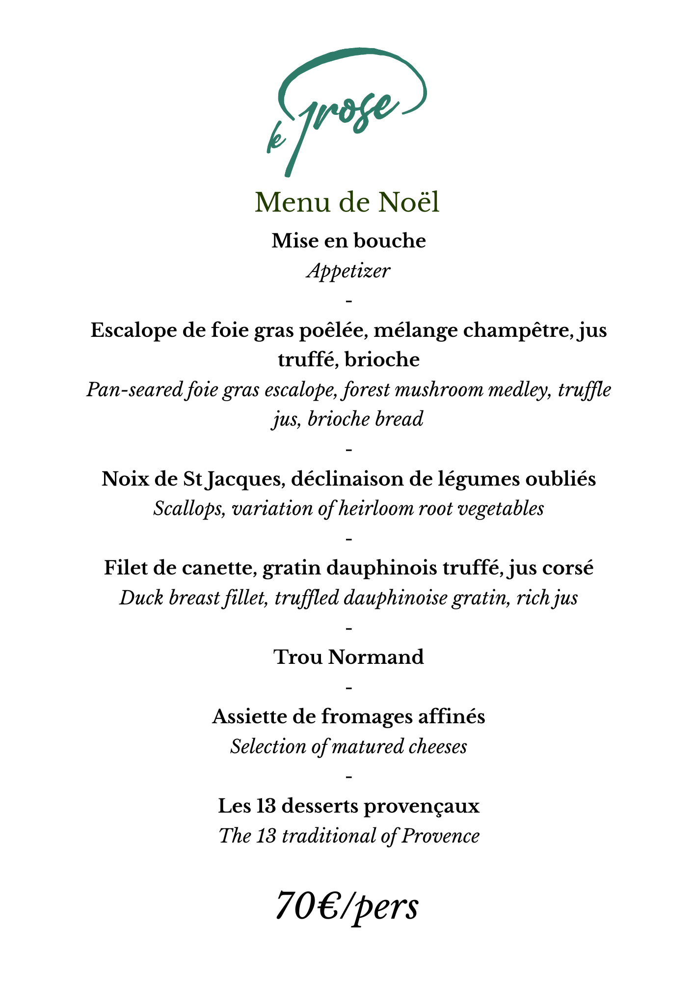 Menus de fête Domaine de Biar©Menus de fête Domaine de Biar|Domaine de BiarDéjeuner de Noël au Domaine de BiarLe Domaine de Biar vous invite à vivre des expériences gourmandes et raffinées. Entre le repas de Noël, le réveillon du Nouvel An et notre brunch de fête, profitez de moments d’exception dans une ambiance chaleureuse et festive.Le 24 décembre : déjeuner festif avec planches de charcuterie, fromages, saumon et dessert de fêtes Le 25 décembre : déjeuner de Noël en 8 temps, riche des produits locaux et saveurs de saisonJe réserveMenu_chezDelagare©Menu_chezDelagare|ChezDelagareLa table des fêtes signée Chez Delagare 70€Un Menu de Fêtes qui mêle créativité, produits d’exception et ambiance chaleureuse – Disponible tout le mois de décembre et de janvier, ce menu à 70 € par personne (hors vins) se déguste dans un décor moderne et urbain, spécialement paré pour les fêtes.Je découvre le menuUn moment partage©Un moment partage|Un moment partageMenu Avant Noël Un Moment Partagé à partir de 45€Les 20 et 21 décembre au soir – uniquement sur réservation avant le 15 décembre – 0699699092 / 0652131573Le MenuMenuFetes_TablesdesPoetes©MenuFetes_TablesdesPoetes|Table des PoètesMenu La Table des PoètesOffrez vous une part de la Table des Poètes pour vos fêtes de fins d’année et découvrez les saveurs uniques des créations de Thomas Réa et son équipe.Sur réservation par mail, téléphone ou en direct – disponible jusqu’au 20 décembre et profitez /10% de remise avant le 05/12Voir le menuMenu_noel_leProse©Menu_noel_leProse|Le ProseSoirée avec dîner au Prose à partir de 70€Hors boissons – Pour ceux qui veulent prolonger la soirée nous avons concocté un pack hôtel + restaurant pour 2 personnes à 250€ comprenant : nuit + dîners + petits-déjeuners – sur réservationJe découvre le menu