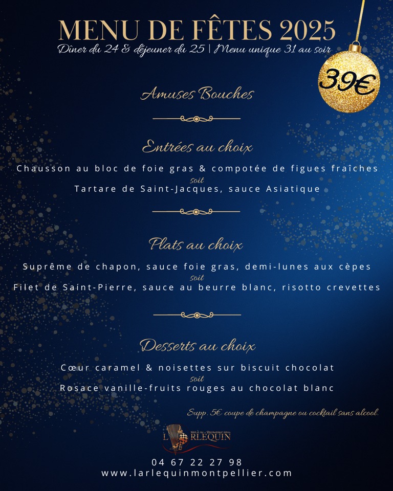 Pour la Saint-Sylvestre et le réveillon de Noël, voici toutes nos suggestions de menus festif / ouvertures chez nos partenaires à Montpellier et en Métropole.